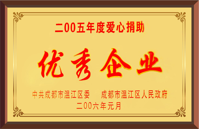2017年溫江區(qū)“關(guān)愛援助中心”捐贈證書